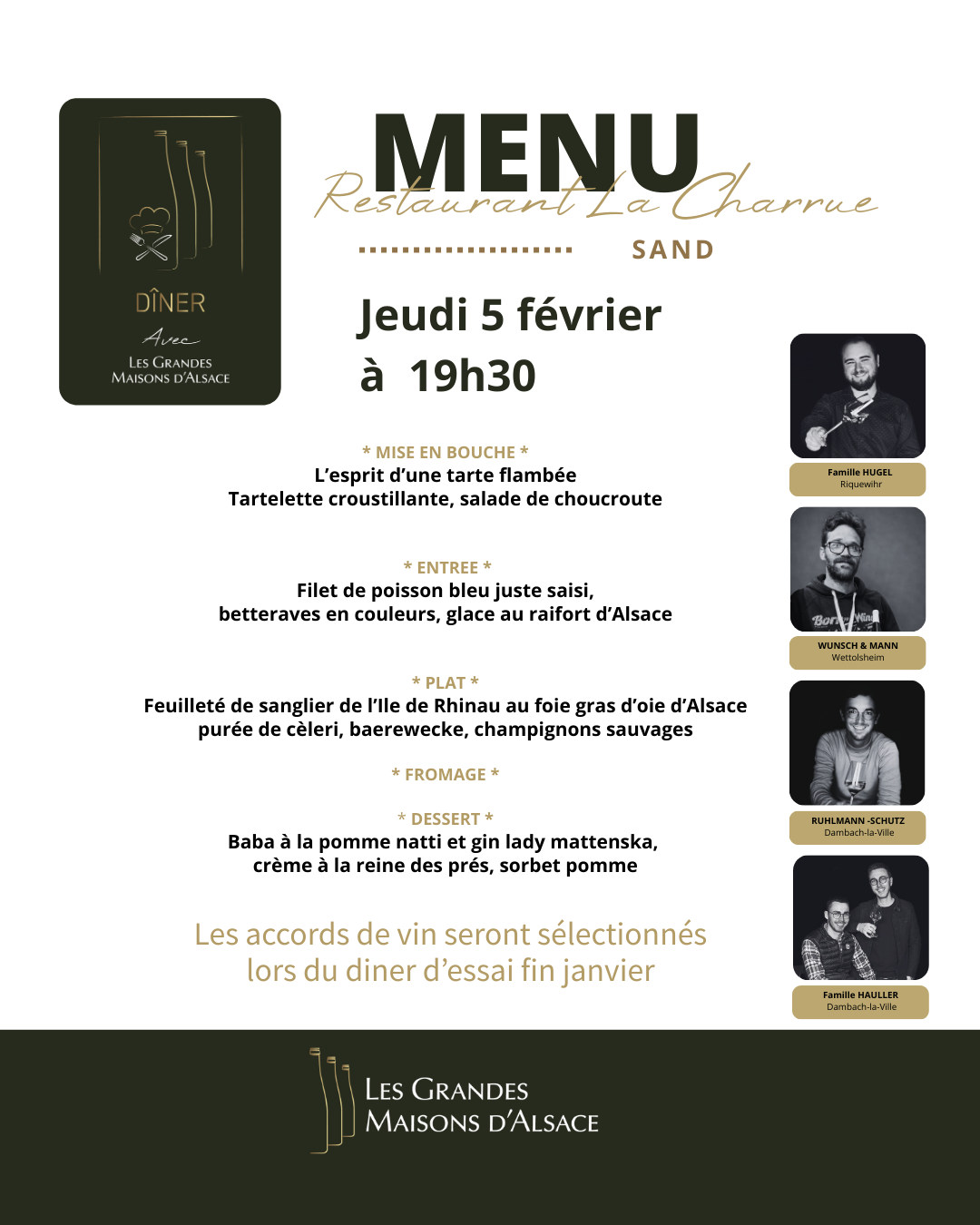 Jeudi 5 février 2026 - Dîner avec les Grandes Maisons d’Alsace